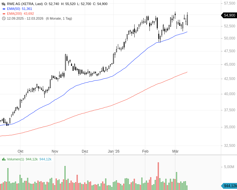 • RWE AG – WKN: 703712 – ISIN: DE0007037129 – Kurs: 54,900 € (XETRA)
