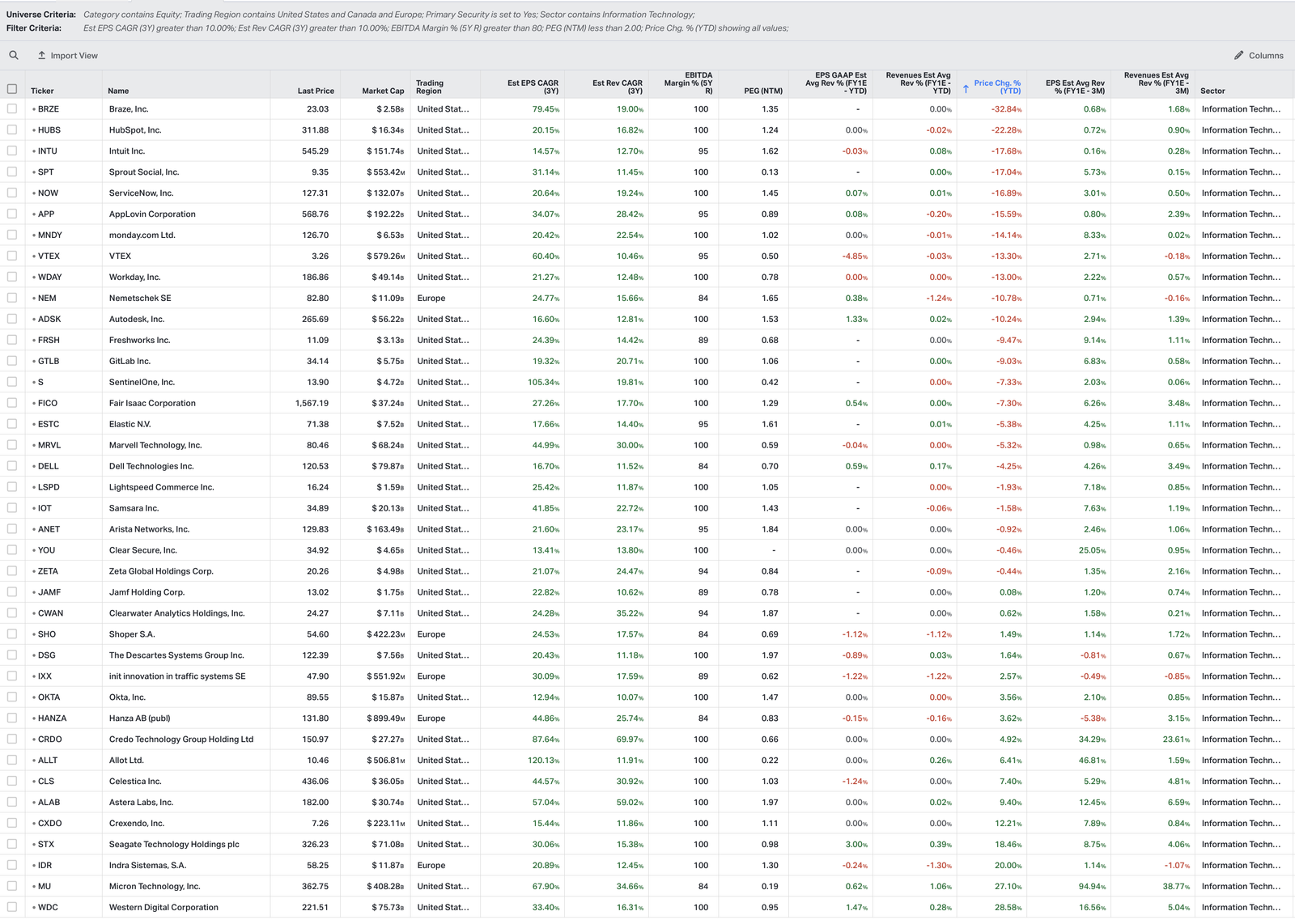 Ergänzt wird die Auswahl durch Sunstone Hotel Investors, Descartes Systems Group, Infragistics, Okta und Hanza. Abschließend sind Credo, Allot, Celestica, Astera Labs, Crexendo, Seagate Technology, Idorsia, Micron Technology und Western Digital enthalten.