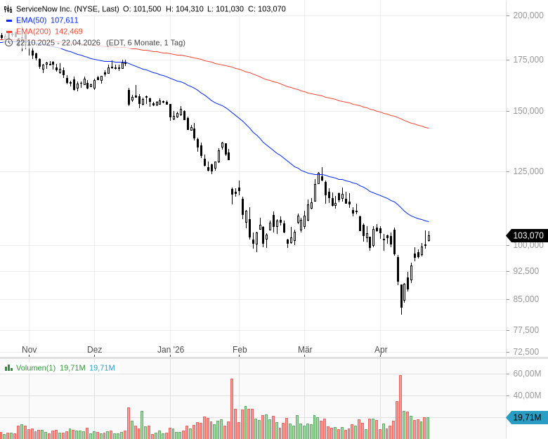 • ServiceNow Inc. – WKN: A1JX4P – ISIN: US81762P1021 – Kurs: 103,070 $ (NYSE)