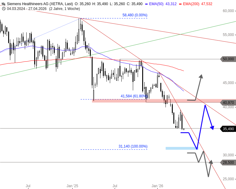 SIEMENS HEALTHINEERS – Kurssturz nimmt mittelfristiges Zielgebiet ins Visier