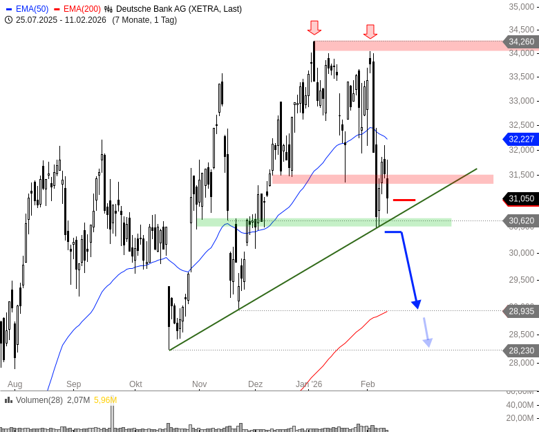 • Deutsche Bank AG – WKN: 514000 – ISIN: DE0005140008 – Kurs: 31,280 € (XETRA)