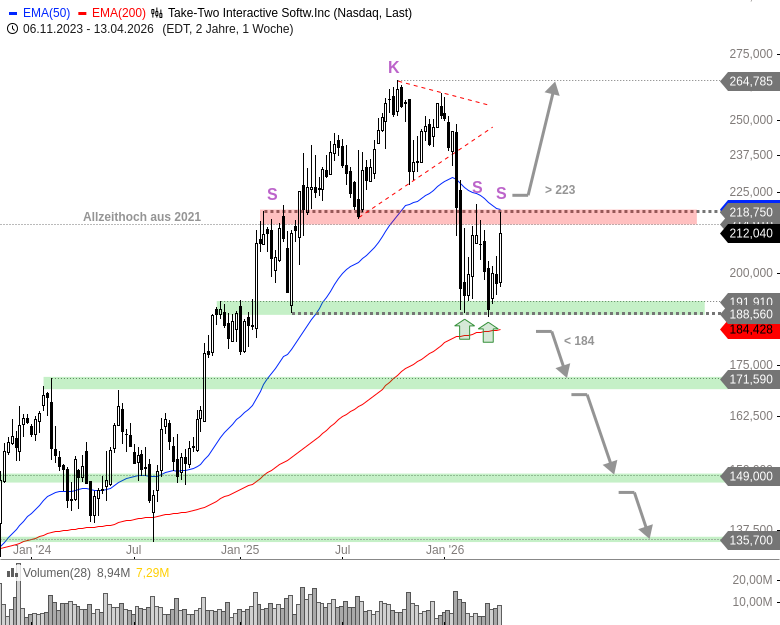 • Take-Two Interactive Softw.Inc – WKN: 914508 – ISIN: US8740541094 – Kurs: 212,020 $ (Nasdaq)