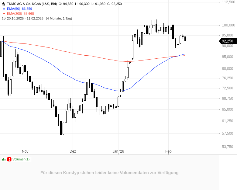 - TKMS AG & Co. KGaA – WKN: TKMS00 – ISIN: DE000TKMS001 – Kurs: 93,500 € (XETRA)