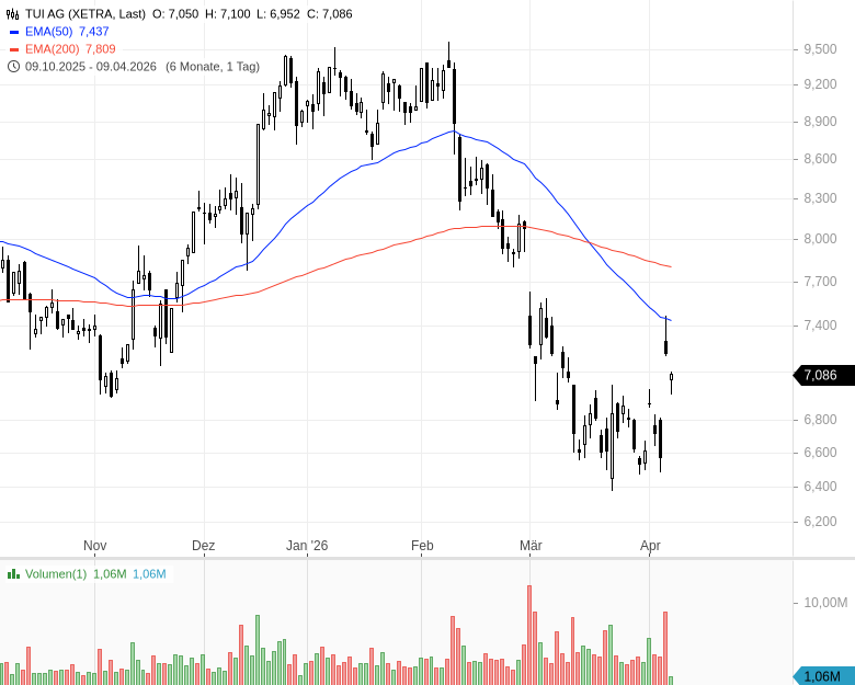 Andererseits wachsen die Risiken schneller als die Chancen. Das Bankhaus Metzler hat sein Kursziel für Tui heute von 14 auf 13 EUR gesenkt, die Kaufempfehlung aber beibehalten. Analyst Nikolas Demeter hält die Jahresziele des Konzerns wegen der Folgen des Iran-Kriegs für kaum noch erreichbar und geht inzwischen davon aus, dass Tui 2026 operativ nur in etwa auf Vorjahresniveau landen dürfte. Aus einem Jahr mit Wachstumsanspruch wird in der Modellrechnung eines wohlgesinnten Hauses ein Jahr des Stillstands.