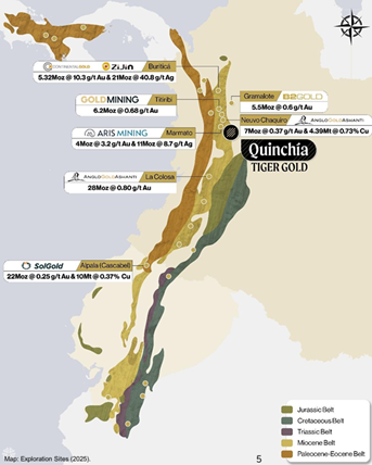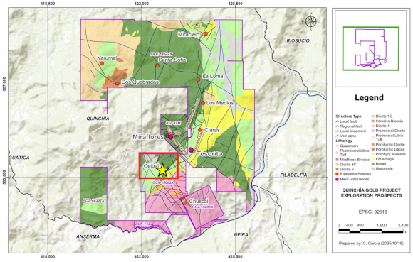Geologisch fügen sich die Ergebnisse in das bekannte Bild des Quinchía-Distrikts ein: Die Mineralisierung steht in Zusammenhang mit einem Porphyr-System, in dem Gold gemeinsam mit Kupfer und Molybdän auftritt und in komplexen Brekzien- und Intrusionsstrukturen eingebettet ist.
