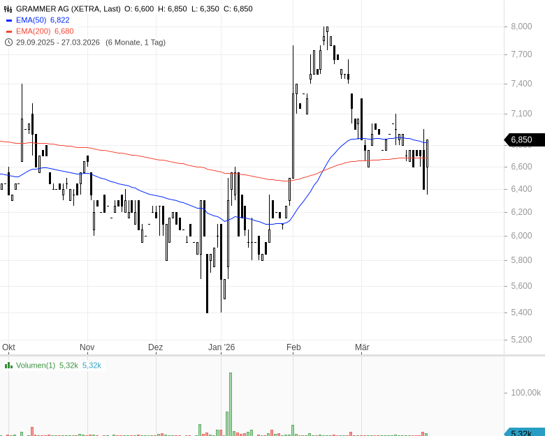- GRAMMER AG – WKN: 589540 – ISIN: DE0005895403 – Kurs: 6,850 € (XETRA)