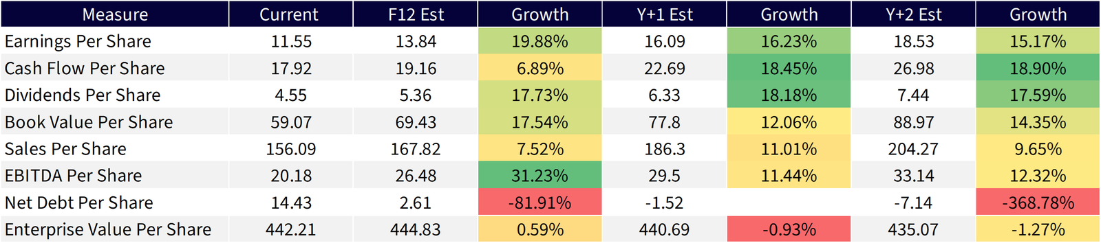 Wenn sich die Auftragsbestände in den nächsten Jahren in Umsatz niederschlagen und die Rentabilität steigt, wird das Gewinnwachstum das KGV natürlich drücken. Bis 2026 und 2027 dürften die Bewertungsmultiplikatoren angesichts der bereits prognostizierten höheren Gewinnerwartungen attraktiver werden.