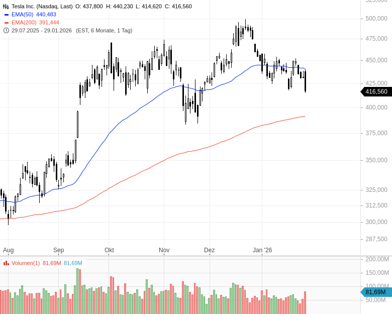 SpaceX gilt mit zuletzt rund 800 Mrd. USD aus einer privaten Finanzierungsrunde als wertvollstes nicht börsennotiertes Unternehmen der Welt. Für den anvisierten IPO wird eine Bewertung oberhalb von 1 Bio. USD erwartet. xAI wiederum wurde im November mit rund 230 Mrd. USD taxiert, Tesla bringt aktuell etwa 1,4 Bio. USD auf die Waage. Eine Fusion würde damit Vermögenswerte in einer Größenordnung bündeln, die selbst im Technologiesektor außergewöhnlich hoch ist.